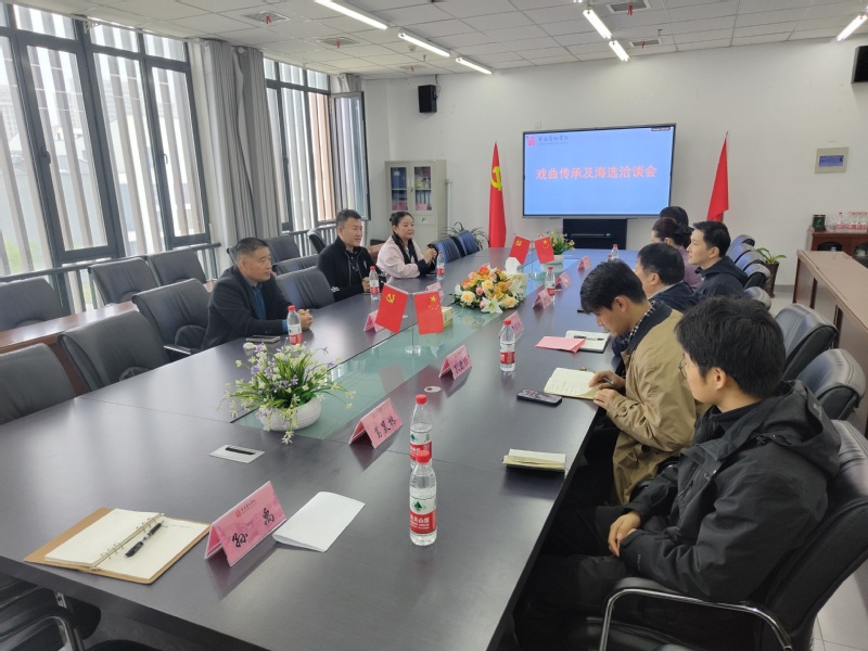 曹磊对客人们的到来表示欢迎,并介绍了学院建设的基本情况。邢成辉热情赞扬了我校的建设成效,介绍了北京星光璀璨栏目组的基本情况。双方就戏曲传承及海选合作模式问题进行沟通,达成基本合作意向。