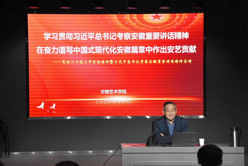 12月17日,戏剧学院在戏剧楼报告厅举办党的二十届三中全会精神暨习近平总书记考察安徽重要讲话精神宣讲会。马克思主义学院院长吴孔铎教授为戏剧学院24级新生作主题宣讲。