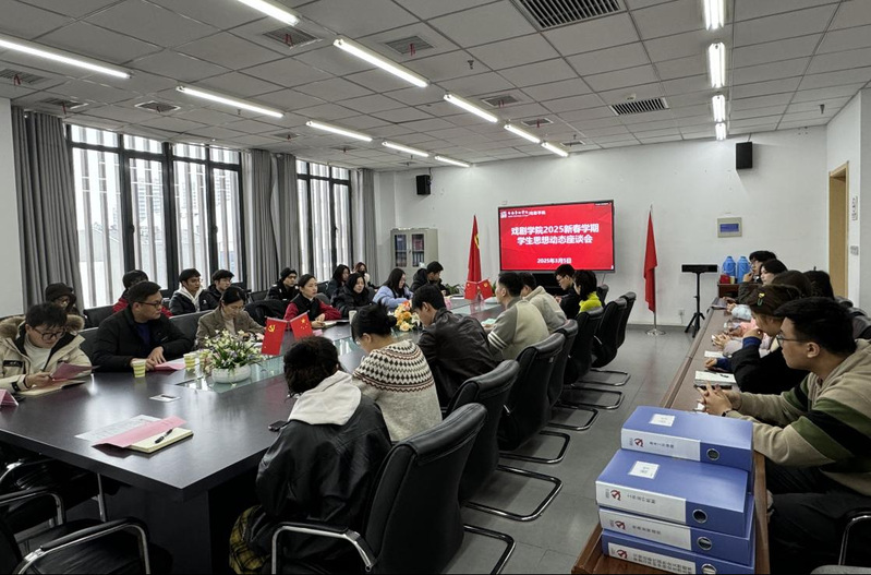 3月5日,戏剧学院在戏剧楼320会议室召开2025年春季新学期大学生思想动态调研座谈会,教务处、学生处、校团委、国资处、保卫处、马克思主义学院相关老师和学院师生代表参加本次座谈会。会议由学院党总支副书记曹磊主持。