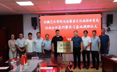 8月22日,戏剧学院党总支委员、副院长杨超,学校后勤管理处副处长、驻金寨县佛堂坳村第一书记姚君,安徽地方戏研究院院长沈后庆,戏剧影视美术设计教研室主任申林松及教研室教师赴金寨参加安徽艺术学院与金寨县文化旅游体育局共同举办的“实习与就业基地座谈会”暨实习基地揭牌仪式。