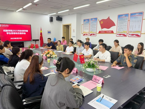 为进一步掌握大学生思想动态,加强思想政治引领,推动学生全面成长,9月29日,学院在戏剧楼320会议室召开2025年秋季新学期大学生思想政治交流研究座谈会,学校各职能部门相关老师出席会议。学院党总支副书记、副院长曹磊及全体辅导员和学生代表参加了此次座谈会。座谈会由学生管理办公室副主任孔晓欣主持。