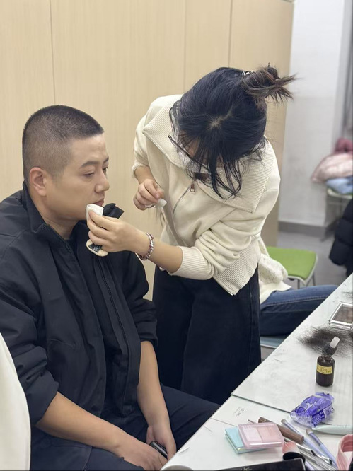 值得一提的是,此次妆造中使用的胡子,正是同学们《毛发制作》课程的作业。师生将专业知识巧妙运用,结合合肥文化精心构思,让每一处服妆细节都别具匠心。