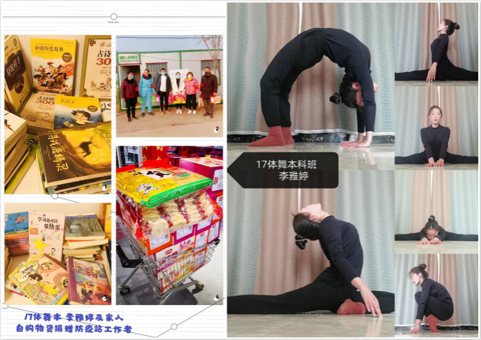悉心指导学生们做到“停课不停学”。鼓励同学们“身宅心不宅”,利用居家时间坚持练功练舞,有规律地训练专业技能;动员学生们充分利用居家时光,陪伴家人,多向父母请教学习生活或厨艺技能,增强个人的综合能力。