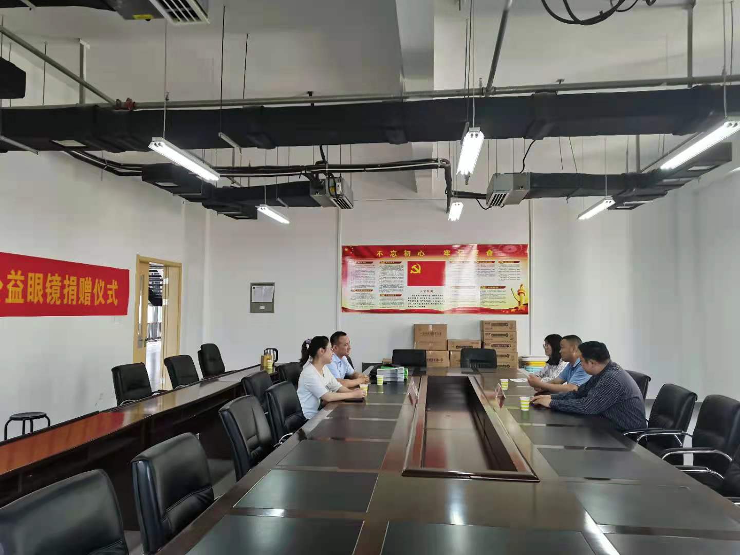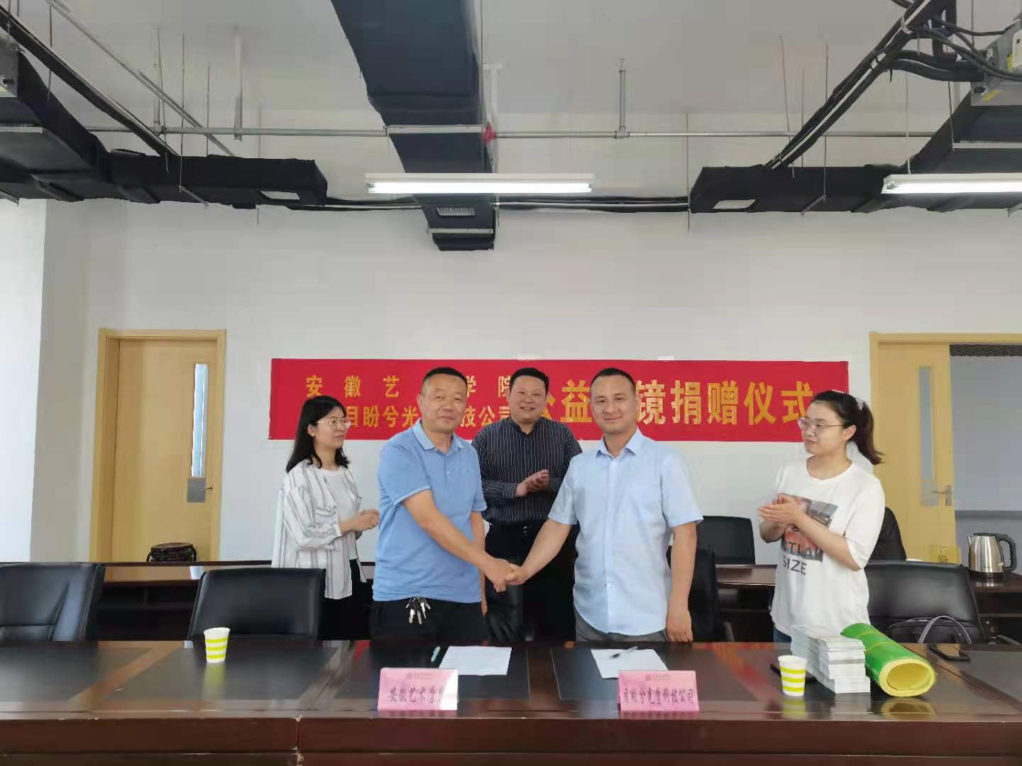 5月21日上午,合肥目盼兮光学科技有限公司来校捐赠眼镜,在艺术设计楼301会议室,合肥目盼兮光学科技有限公司总经理王勇、验光师王琪,学生处处长刘长华、副处长陈明及相关工作人员出席了捐赠仪式,并开展工作交流。