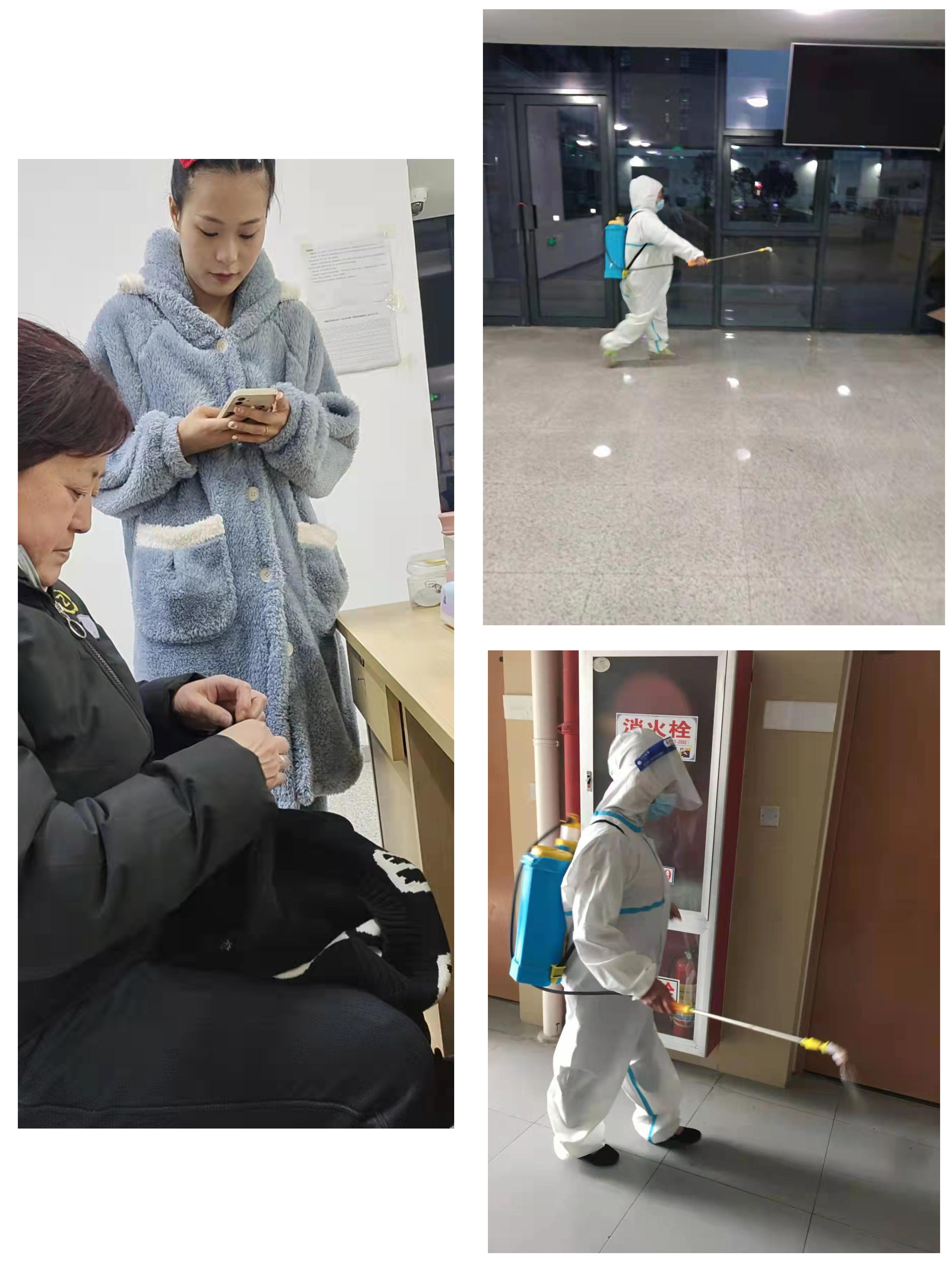 管理物业定时进行学生公寓各公共区域消杀、宿管阿姨暖心为学生缝补衣服等。