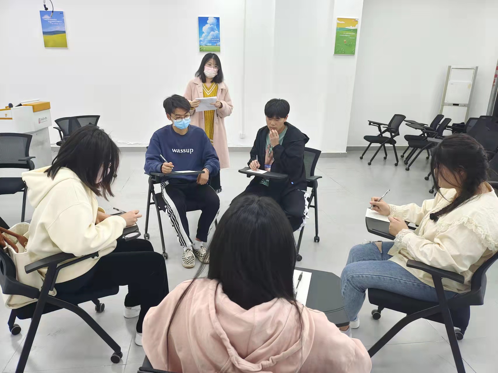 为改善疫情封校期间大学生情绪问题,增强大学生自我情绪调节能力,同时让学生体验团体心理辅导的魅力,2022年4月6日下午1:30-2:30,我校大学生心理健康中心组织开展了以“学会调节情绪,做情绪的主人”为主题的团体心理辅导活动。此次活动由心理健康中心实习老师带领,以富有趣味性的团体活动与富有探索性的团体分析与讨论,发现和解决团体成员生活与学习中常见的情绪问题与心理困扰。