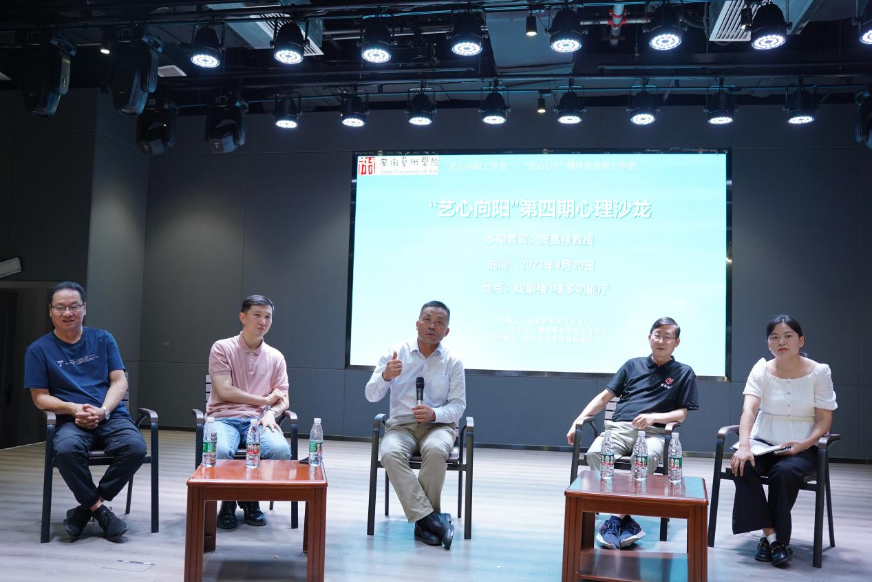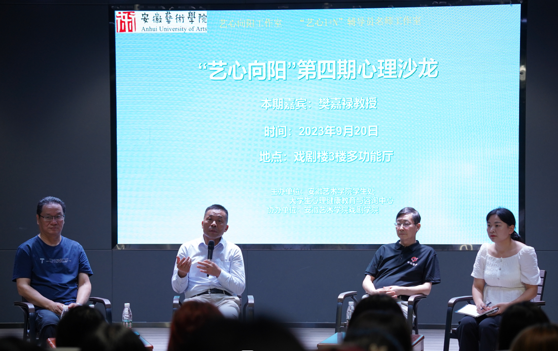 为进一步增进我校三全育人工作实效,推动心理健康教育工作走深走实,2023年9月20日,由安徽艺术学院大学生心理健康教育与咨询中心主办、戏剧学院协办的第四期心理沙龙活动在戏剧楼报告厅举行。参加本次心理沙龙活动的有安徽艺术学院党委副书记、校长樊嘉禄教授,戏剧学院党总支副书记曹磊老师、党委学生工作部(学生处)副处长王立仁老师,校心理健康教育与咨询中心副主任戴宇峰和舞蹈学院团总支书记贾方敏老师,活动在曹宇老师的主持中开场。