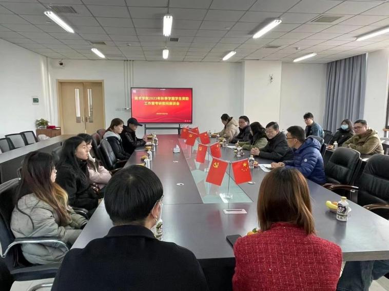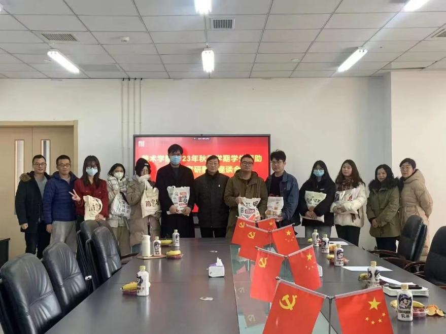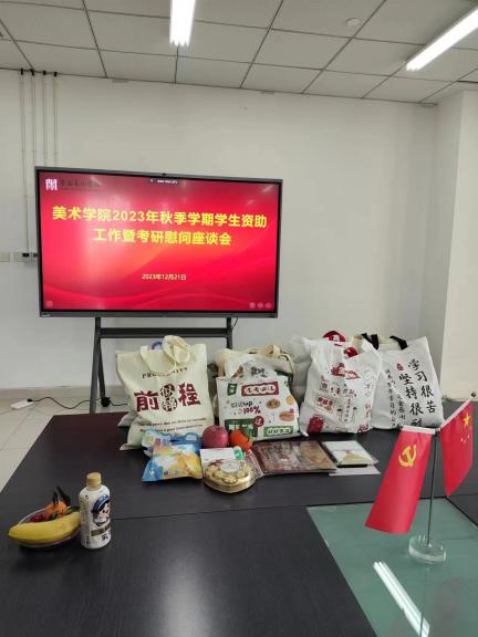 2023年12月21日上午十点,学生处副处长王立仁、高英娟、学生管理科科长王力平一行来到美术学院307会议室,参加美术学院2023年秋季学期学生资助工作暨考研慰问座谈会。美术学院党总支书记陈明海、副书记李卫国、学生管理办公室副主任刘民参与此次座谈会,会议由李卫国主持。