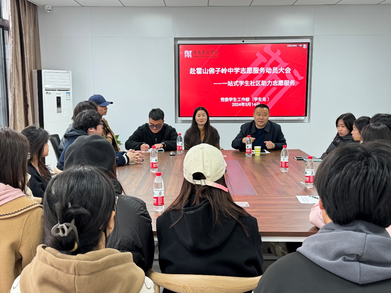 3月14日下午,学校在一站式学生社区召开赴霍山佛子岭中学志愿服务动员大会。学生处处长刘长华、学生处思想教育科副科长金转、校团委挂职副书记曹宇出席会议。