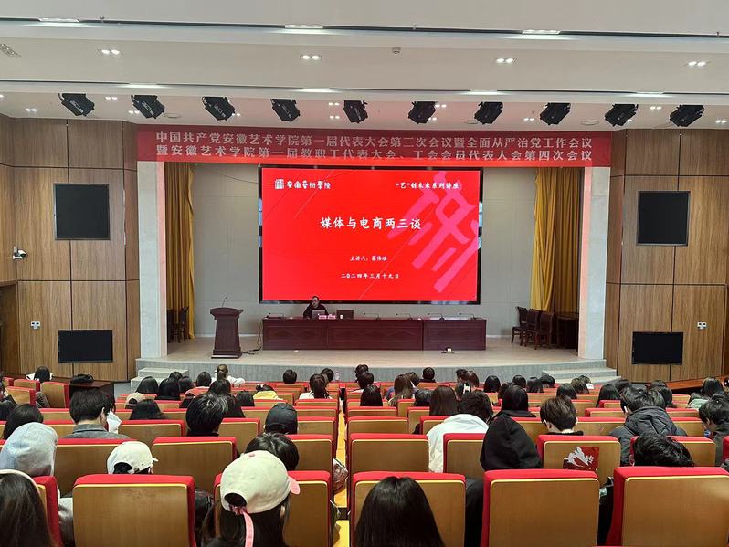 3月19日上午,我校在综合楼五楼报告厅举办“艺”创未来系列讲座,本次讲座邀请我校就业创业导师、合肥钜兔文化传媒有限公司创始人葛伟琪为同学们做题为“媒体与电商三两谈”专题讲座。
