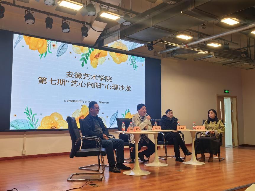 为全面贯彻落实党的教育方针,进一步加强我校心理健康教育和管理工作,构建完善的青少年健康成长保障体系。2024年3月20日,由我校心理健康教育中心和舞蹈学院联合举办的第七期“艺心向阳”心理沙龙活动在大学生活动中心举办,由舞蹈学院专职辅导员贾方敏老师主持,本期沙龙主题为“悦纳自我,与情绪和解”。活动邀请了校党委委员、纪委书记宣扬,学生处副处长王立仁,心理健康教育与咨询中心副主任戴宇峰,设计学院专任教师张书佳共同为现场的同学们答疑解惑。