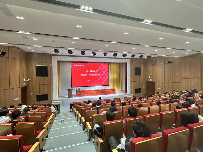 楚金金向同学们做题为《何为光荣,你的选择就是答案暨大学生征兵政策解读》讲座,就为什么要参军、大学生征兵政策等进行详细解读。他向同学们介绍了征兵工作的深刻内涵和重要意义,并就大学生入伍优惠政策、毕业生和在校生入伍的区别、户籍地和学校所在地入伍的区别等问题进行了详细的解读。他号召同学们积极投身国防事业,将个人价值追求与国家建设紧密结合,在实现中国梦的伟大征程中实现自己的理想抱负,书写辉煌的人生篇章。