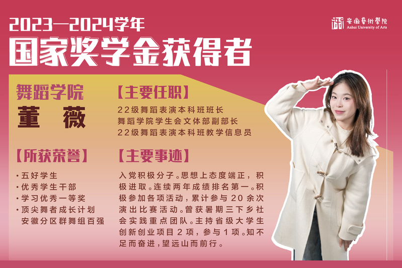 2023-2024学年国家奖学金获得者风采展示|舞蹈学院 董薇