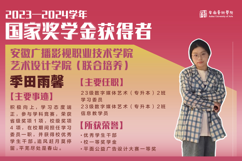 2023-2024学年国家奖学金获得者风采展示|安广(联合培养)季田雨馨