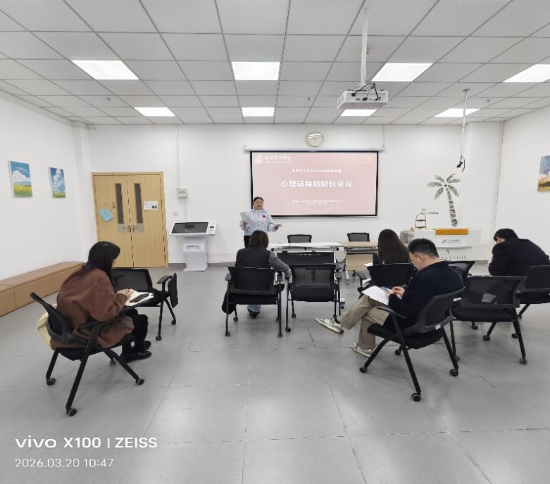 为进一步加强我校学生心理健康教育工作,有效开展春季学期学生心理危机排查与干预,保障学生身心健康和校园安全稳定,心理中心于3月20日上午10点在食堂三楼310团辅室召开2026年春季学期二级学院心理辅导站站长会议。本次会议由心理中心专职工作人员贾方敏主持,学生处处长高英娟、副处长孙阿楠出席,各二级学院心理辅导站站长参会。