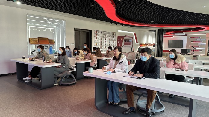 钟军从新时代高校二级学院党建工作的新要求、高校二级学院党建工作的现状及问题、合工大仪器科学与光电工程学院党委党建双创工作三个方面进行讲解,为传媒学院党总支成员详细介绍了党建工作经验。