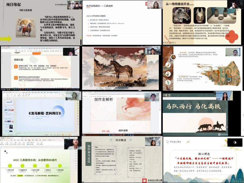 比赛采用线上答辩形式进行,分为职校组与本研组两个赛道。参赛团队围绕“生肖马”主题,运用Stable Diffusion等AIGC技术,对创作出的AIGC作品进行线上答辩。本次大赛不仅是一次技能竞技,更是数字艺术教育与产教融合成果的集中展示。通过以赛促学、以赛促创,有效推动了AIGC技术在安徽高校教学与实践中的落地,为培养新时代数字艺术与科技融合人才提供了重要平台。(撰稿:祝赫 摄影:钱振 初核:刘涛 编辑:陆璐 审定:刘长华)