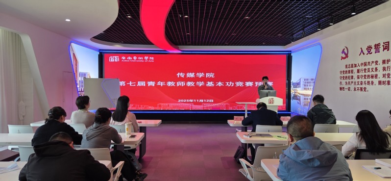 11月12日下午,传媒学院2025年青年教师教学基本功竞赛在播音楼五楼VR实训室开赛。比赛邀请合肥工业大学陈殿林教授和安徽中医药大学方方教授共同担任评委,传媒学院青年教师王子涵主持活动。