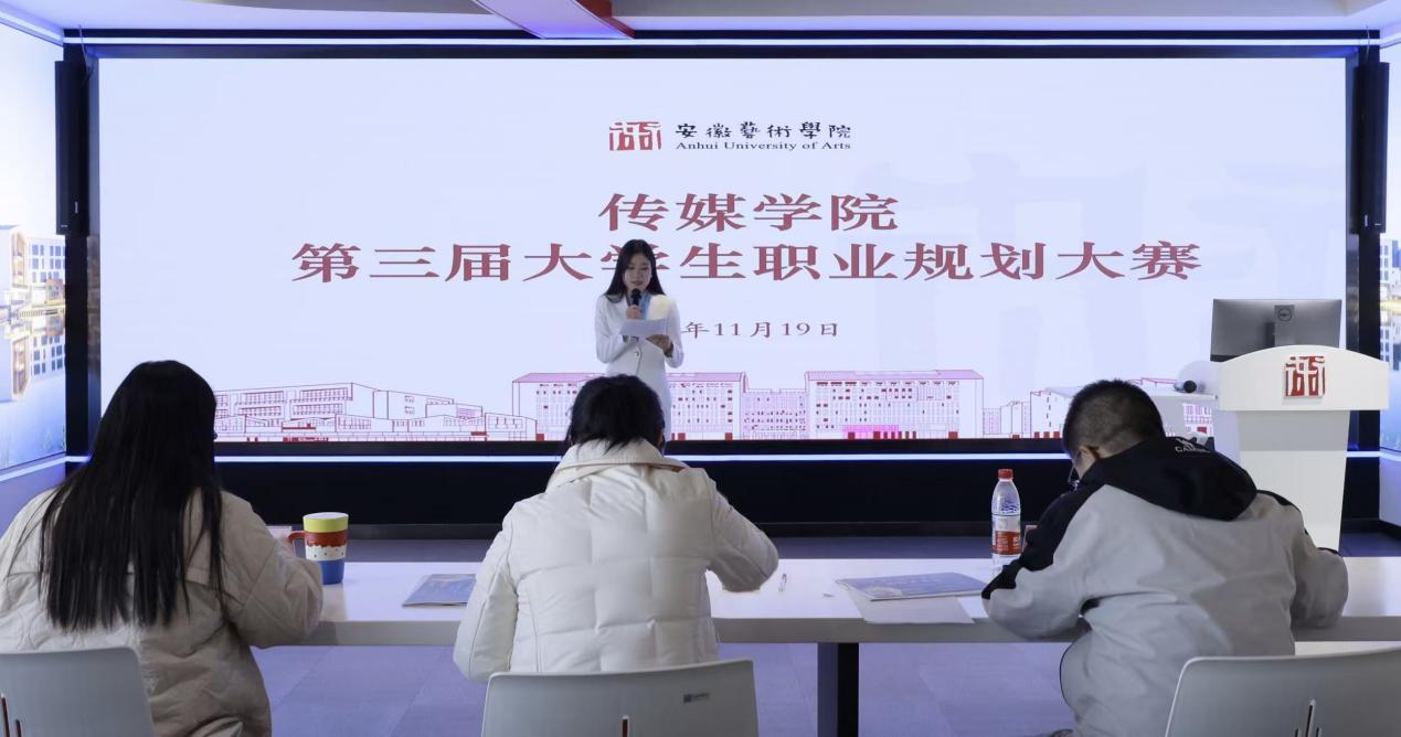 11月19日中午,传媒学院第三届大学生职业规划大赛在传媒学院VR党建室顺利举办。播音与主持艺术专业教研室主任袁姝月、新闻学教研室副主任胡兰雪、影视摄影与制作教研室教师查涛阳担任比赛评委。