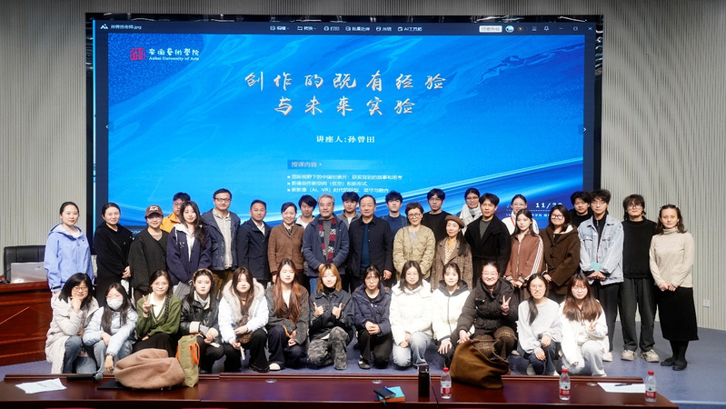 讲座中,孙曾田结合创作经历,分享了纪录片《最后的山神》、《黄河一日》等创作的幕后故事,诠释了“创作不仅是既有经验的分享,更重要的是对未来的展望和实验”。讲座中,孙曾田还解读了低空经济带来的空间革命和影视视角革新、以及AI技术的趋势,鼓励学生“夯实文本创作与艺术想象能力,主动抢占新领域‘处女地’”。