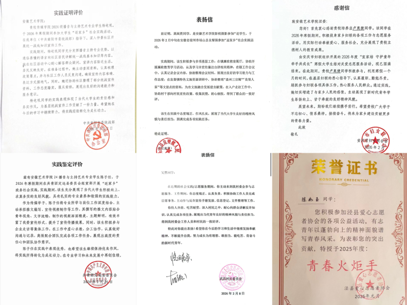 活动期间,我院学子充分发挥传媒专业优势,聚焦家乡文化传播与形象推广,积极拍摄制作研学纪实短片、公益宣传片等影像作品,以青春视角记录家乡变迁,以融媒表达讲好家乡故事。同时,同学们还主动投身社区治理、公益服务、乡村支教等基层实践,走进田间地头、街道社区,在服务群众中锤炼意志、提升能力。本次实践活动取得了良好的社会反响,其中,有12名同学因表现突出,获得基层单位及群众授予的表扬信、感谢状等荣誉,充分展现了我院学子昂扬向上的精神风貌与扎实过硬的专业素养。