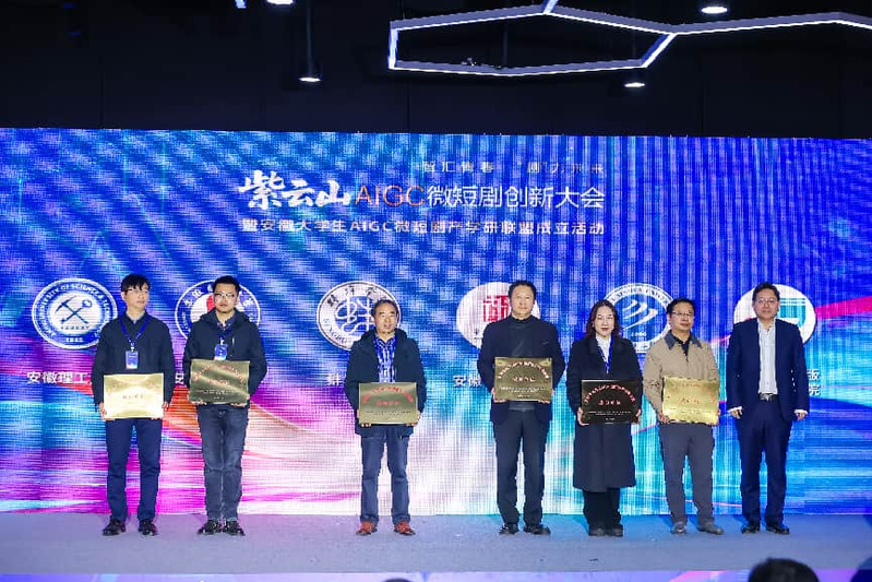 本次活动由中共安徽省委宣传部指导,安徽省教育厅、安徽省人力资源和社会保障厅、安徽省文化和旅游厅、安徽省文学艺术界联合会、安徽广播电视台联合主办。活动现场,省委常委、宣传部部长钱三雄出席大会并宣布安徽大学生AIGC微短剧产学研联盟正式成立,标志着安徽省首个聚焦大学生AIGC微短剧领域的产学研合作平台正式落地。在联盟成员单位授牌仪式上,主办单位领导为包括我校在内的首批30所高校授予“安徽大学生AIGC微短剧产学研联盟成员单位”牌匾,传媒学院将作为学校对接联盟的核心执行单位,深度参与安徽AIGC微短剧产业生态的共建共享工作。