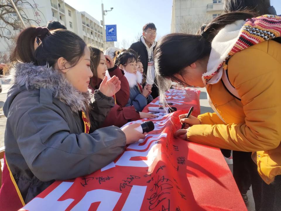 教育学院举行西安事变和平祝福语条幅签字…