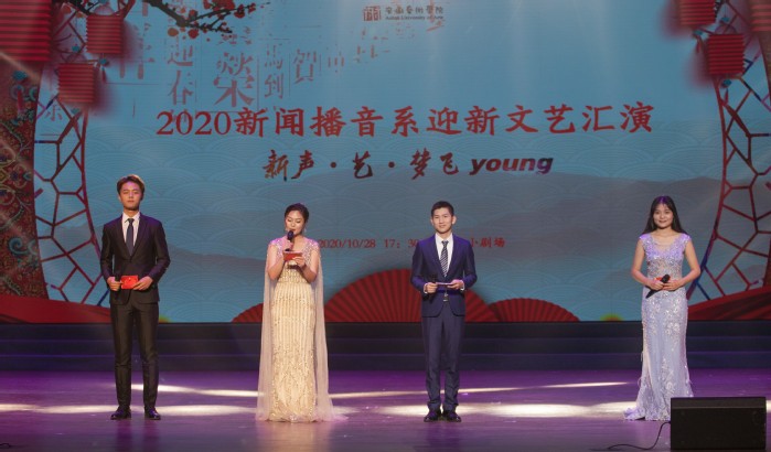 流光溢彩迎新夜,心心连新齐飞扬。为迎接2020级新生入学,丰富师生精神文化生活,经过精心筹备,10月28日晚,新闻播音系在戏剧楼小剧场举办2020迎新晚会。学校党委委员、宣传部部长吴孔铎,音乐舞蹈系主要负责人孙来法,新闻播音系主要负责人王琍琍,部分职能部门领导、老师及学生到场观看。