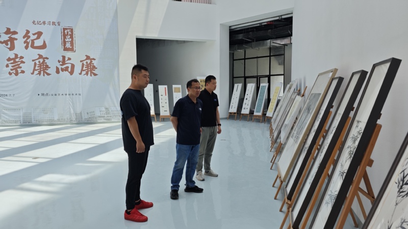 为做好党纪学习教育,7月3日上午艺术创新与实践中心党支部开展了主题党日活动,参观学校主题为“学纪守纪、崇廉尚廉”的党纪学习教育作品展。