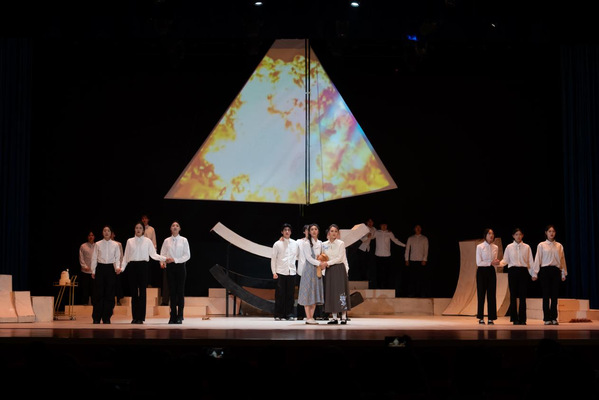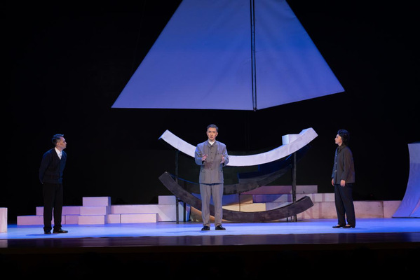 此次展演原创话剧《抉择》由我校戏剧学院五十余名师生历时五个多月潜心创作、反复打磨完成。以杨振宁、许鹿希、邓志典等重要人物的回忆为叙事支点,围绕“两弹元勋”邓稼先的奋斗人生,构建起多维交织的戏剧空间。剧中通过邓稼先与杨振宁跨越时空的深厚情谊、工程兵刘春光的英勇事迹、国际友人寒春对原子弹的深刻反思,以及亲人之间的细腻情感等,串联起一段段感人至深的家国故事。这一叙事结构不仅艺术化地呈现了科技工作者在人生关键节点的毅然抉择,更将他们隐姓埋名、以身许国的崇高精神与鲜活真实的情感世界融为一体,实现了历史真实与艺术表达的有机统一。