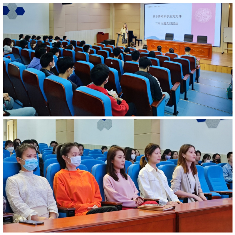为丰富学生党员党史学习内容,加深党员们对中国共产党百年奋斗历史的理解,2022年3月16日,音乐舞蹈系第一、第二、第三学生党支部在音乐南楼报告厅联合开展了三月主题党日活动。本次活动为学生党支部2022年“重温党史、喜迎二十大”系列活动之一,活动以观看弘扬中国人民解放军当代精神的电影《红海行动》为主,由第二学生党支部书记张珂主持,第一、第二、第三全体支委成员及部分学生党员参会。