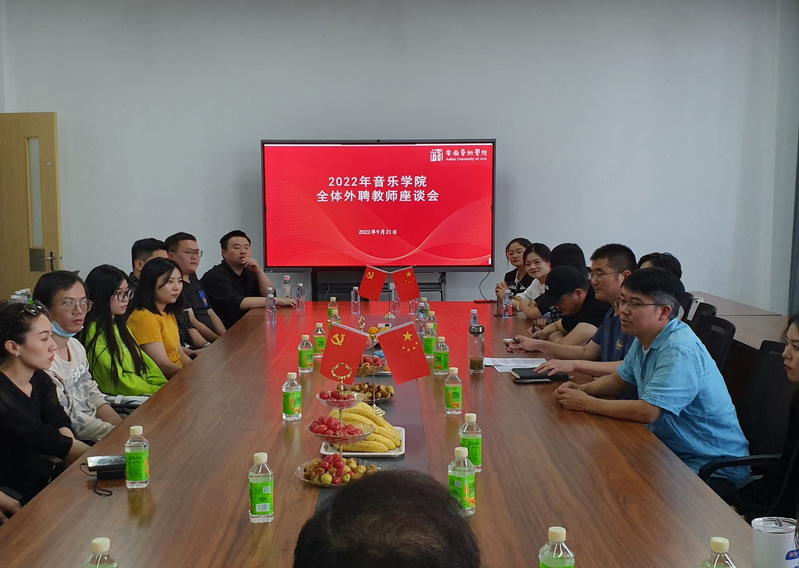 为提高我院教师教学质量,进一步加强与外聘教师的沟通交流,音乐学院2022年度外聘教师座谈会于9月21日下午在音乐南楼104会议室召开。校党委委员、音乐学院党总支书记、院长孙来法,副院长薛业浩,教科研办公室主任、学院各教研室主任、教学督导参加会议。