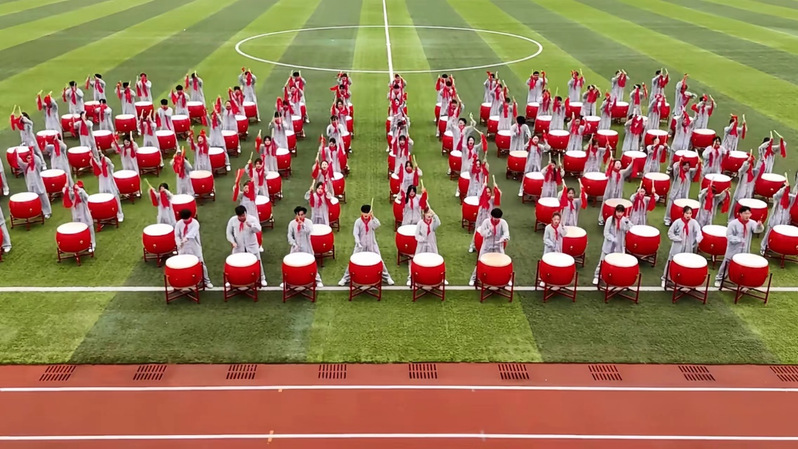 运动场上,正如校宣传部理论教育科科长束舒娅所写的口号一样,他们“击鼓其镗,声撼八方;一锤定音,‘乐’然场上”,整齐划一的动作和震撼人心的鼓声赢得的全校师生的掌声。