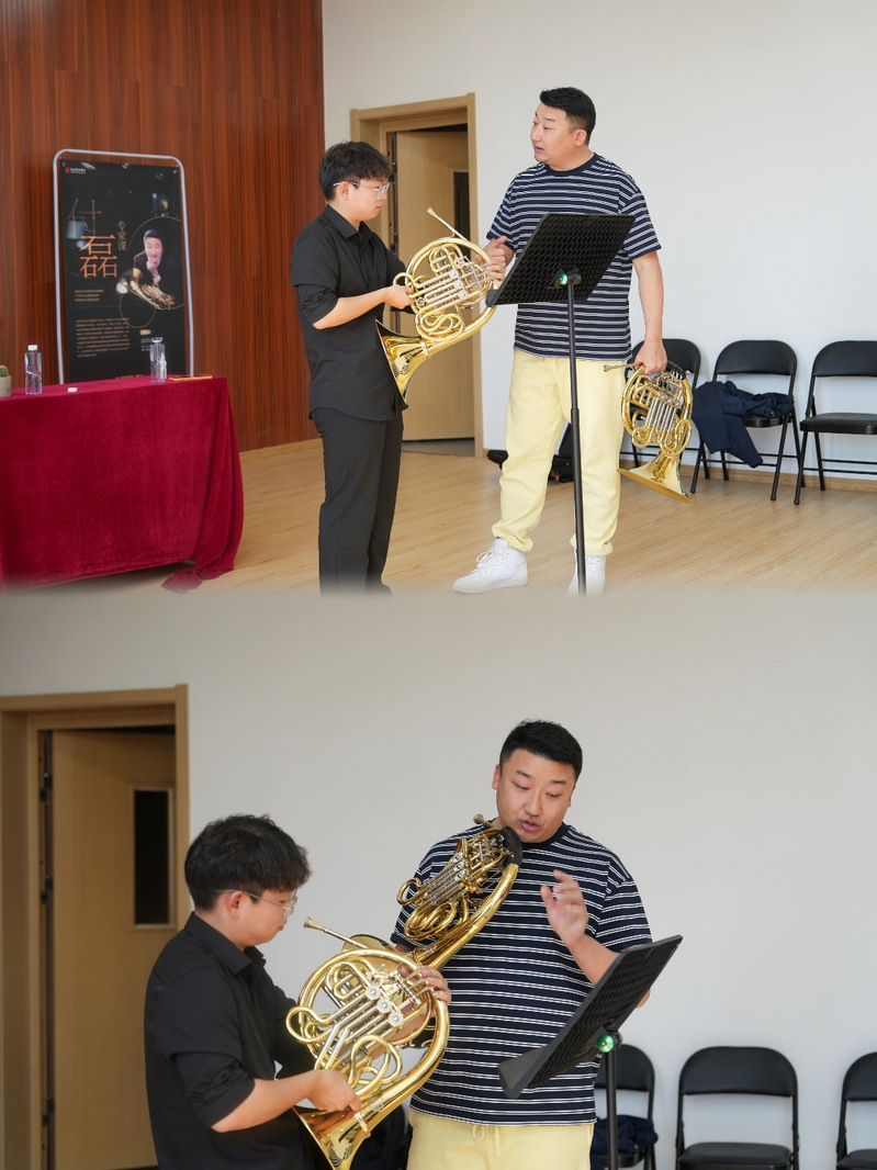此次授课中,付磊教授主要聚焦于就颤音,音位尾,气息等圆号演奏中的演奏技巧及练习的方法。付磊教授通过浅显易懂的话语并示范,清晰明了地为同学们解决问题。与同学积极互动,为同学答疑解惑。