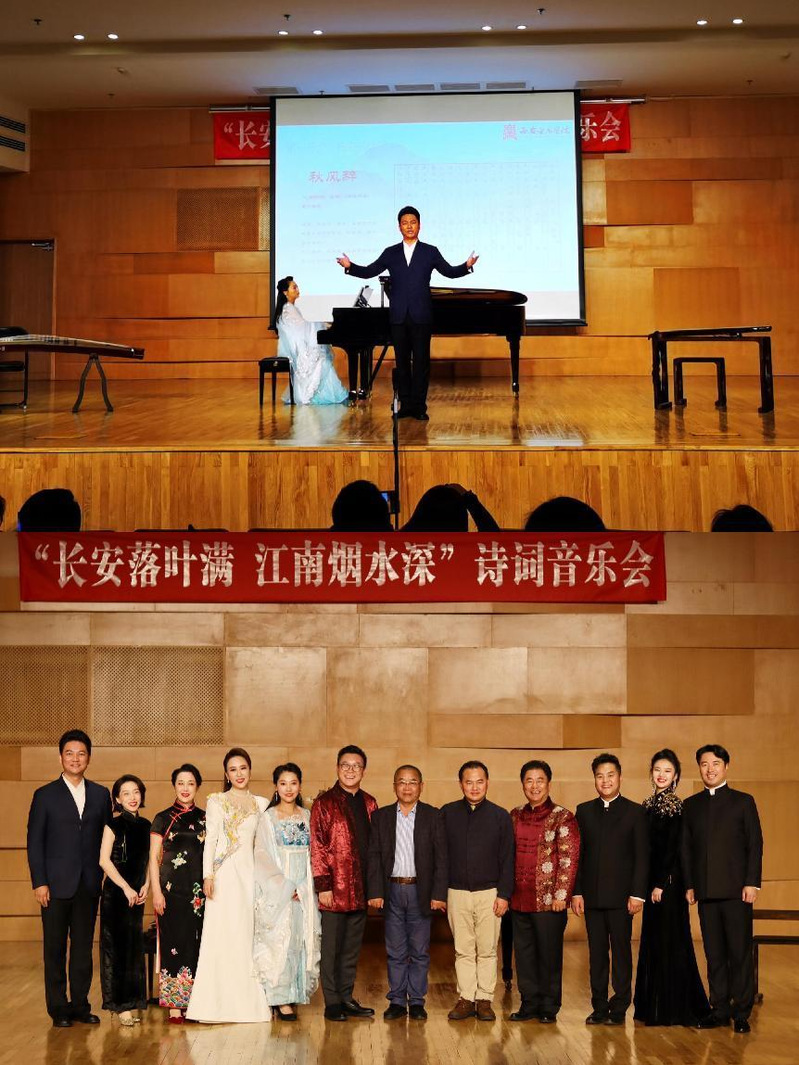 11月8日和9日,安徽艺术学院中华古谱诗词传承创新研究中心主任张祖顺受邀赴西安和来自上海、甘肃、四川、陕西的歌唱家们同台共唱,成功参演了西北工业大学“风雅弦歌”古谱诗词音乐会和西安音乐学院“长安落叶满 江南烟雨深”古谱诗词音乐会,将选自明乐《魏氏乐谱》的古谱诗词《秋风辞》唱响古都长安。