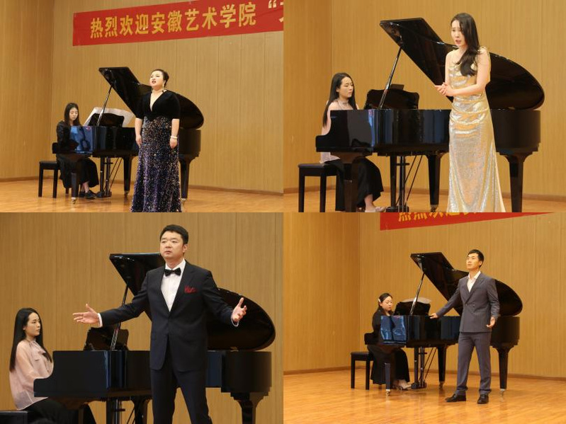 安徽艺术学院的教师们演唱了《浪淘沙北戴河》《夜之梦》《我亲爱的爸爸》和钢琴独奏《伊索的盛宴》等作品,万博学院的教师们也表演了《在水一方》《炙热的心愿》等作品。