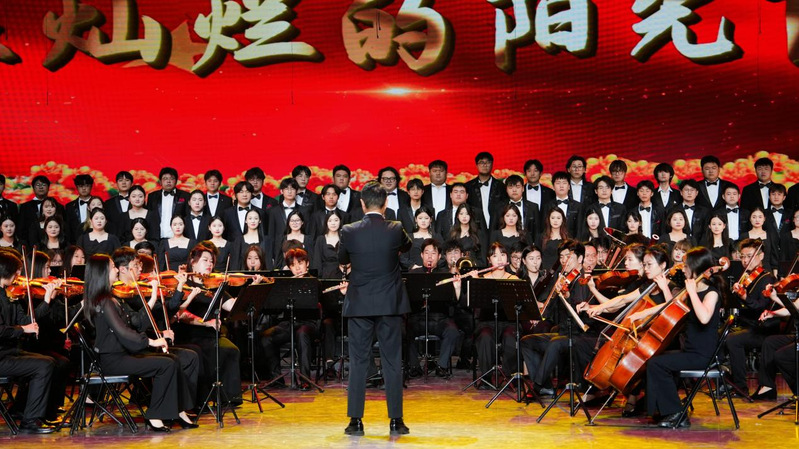 此次活动由安徽省教科文卫体工会主办,由安徽艺术学院承办。安徽艺术学院交响乐团和安徽艺术学院合唱团表演了交响与合唱《在灿烂的阳光下》,歌曲气势恢宏,表达了对祖国的深情与热爱。