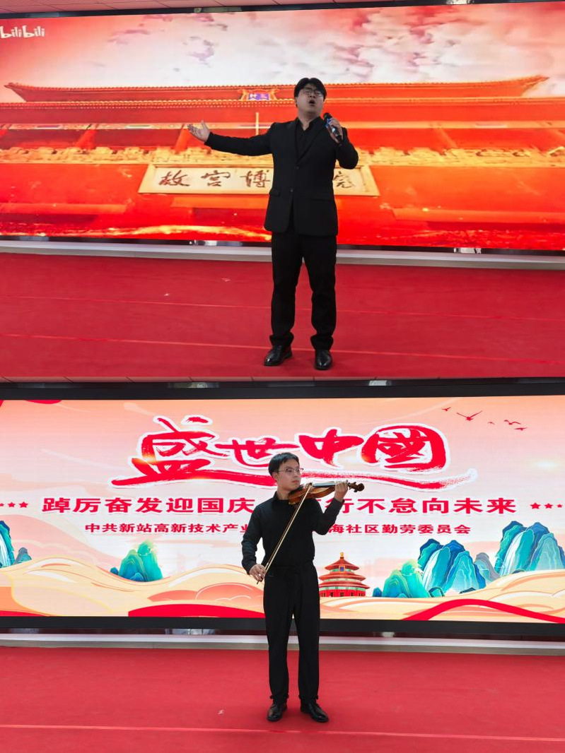 此次活动由安徽省中共新站高新技术产业开发区瑶海社区勤劳委员会主办。安徽艺术学院学生张宁波表演了男声独唱《把一切献给党》,陆雨昇演奏了小提琴独奏《我和我的祖国》,对辖区党员、群众进行慰问,一起欢庆国庆的到来。