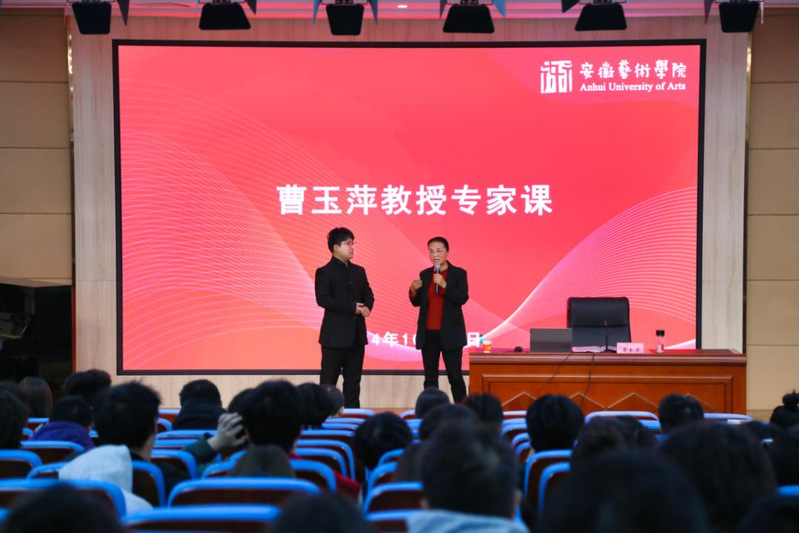 10月29日9:30,2024年安徽艺术学院音乐学院第四届艺术实践周暨国乐音乐季“曹玉萍教授专家课”在音乐南楼报告厅成功举办。声乐与歌剧教研室两百多名师生现场观摩学习,音乐学院副院长张祖顺主持专家课。