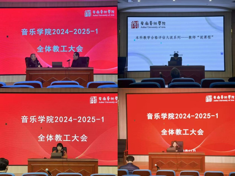 2024年12月4日与11日下午,音乐学院在学术报告厅开展“九说”系列之“说课程”教研活动。该活动历时两周,在教研室内部首轮“说课”基础上,在全院范围开展覆盖全体教师的深度研讨,全力备战本科教学工作合格评估。