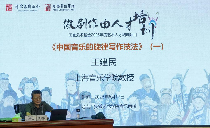6月17日上午,上海音乐学院王建民教授以《中国音乐的旋律写作技法》(一)授课。紧扣 “源于传统 守正创新” 主题,他深入剖析旋律写作基本技法,并以二胡狂想曲为范例,从体裁题材、风格特色、审美取向等维度展开论述,将理论知识与演奏技法巧妙融合,为学员们打开音乐创作的全新视角。