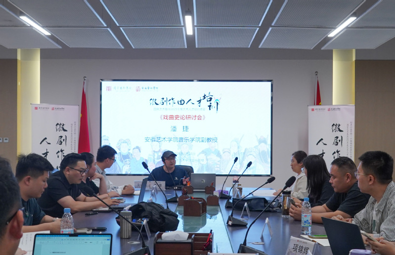 下午,安徽艺术学院潘捷副教授主持,30位徽剧作曲人才培训学员围绕徽剧发展历史、徽班与徽剧、戏曲音乐发展在戏曲史中的定位与意义、戏曲作曲(戏曲创腔)发展脉络、当代戏曲音乐新发展等六大议题展开热烈研讨。