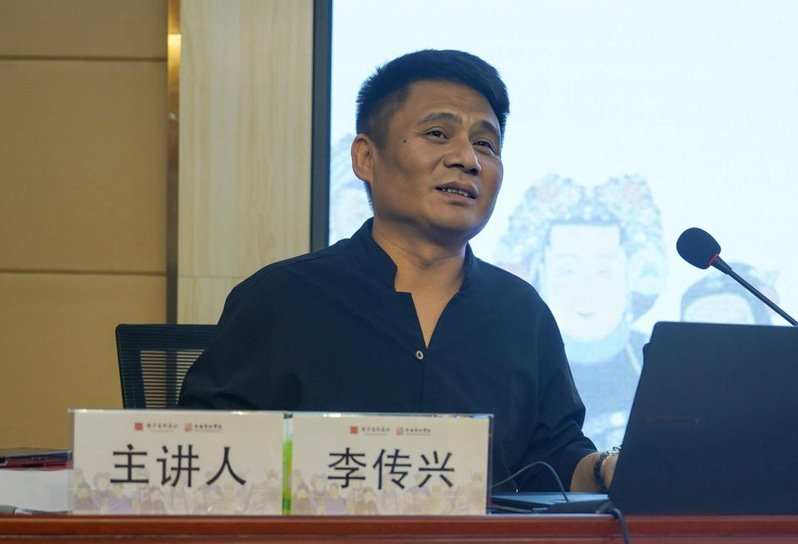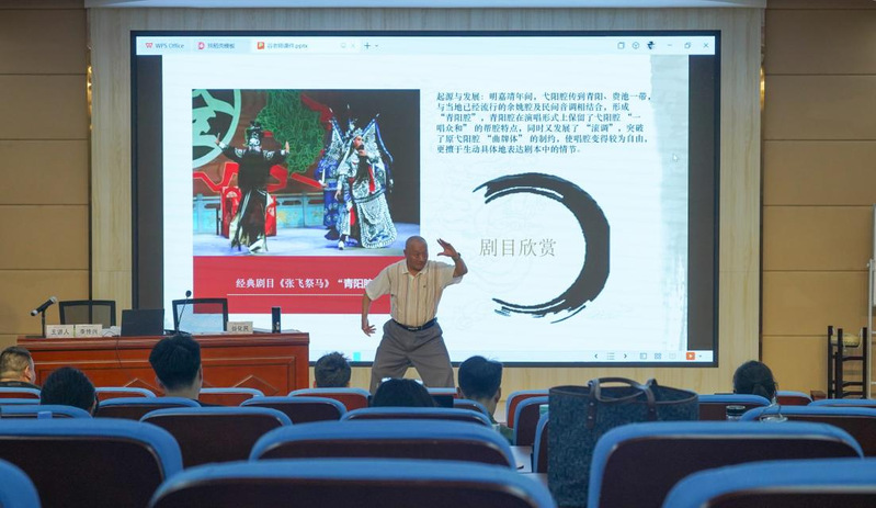 下午,安徽艺术学院李传兴教授开讲《徽剧传统剧目鉴赏——水淹七军》课程。