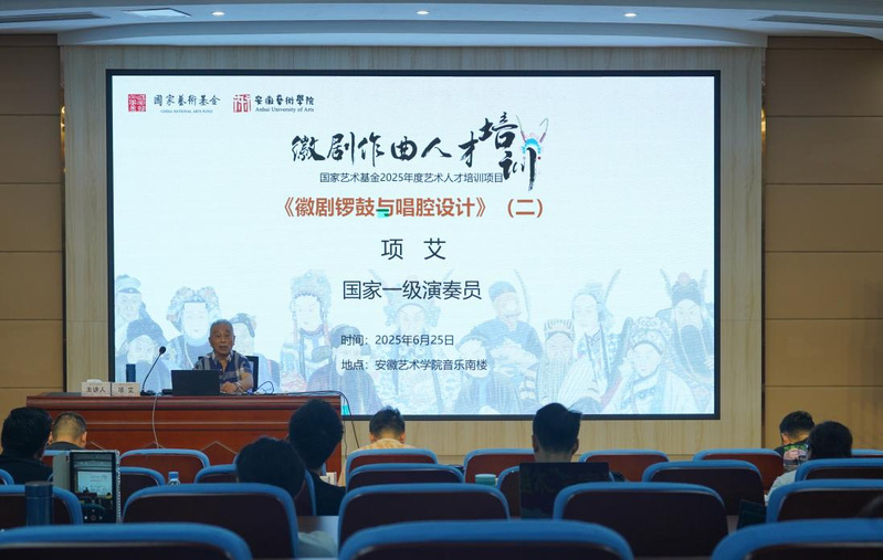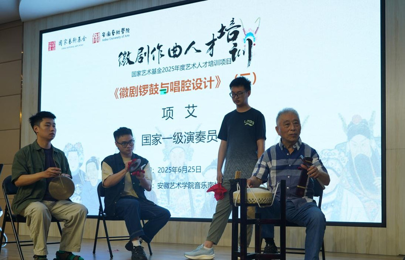 6月25日上午,安徽省徽京剧院一级演奏员项艾继续以《徽剧锣鼓与唱腔设计》为核心内容课程授课。