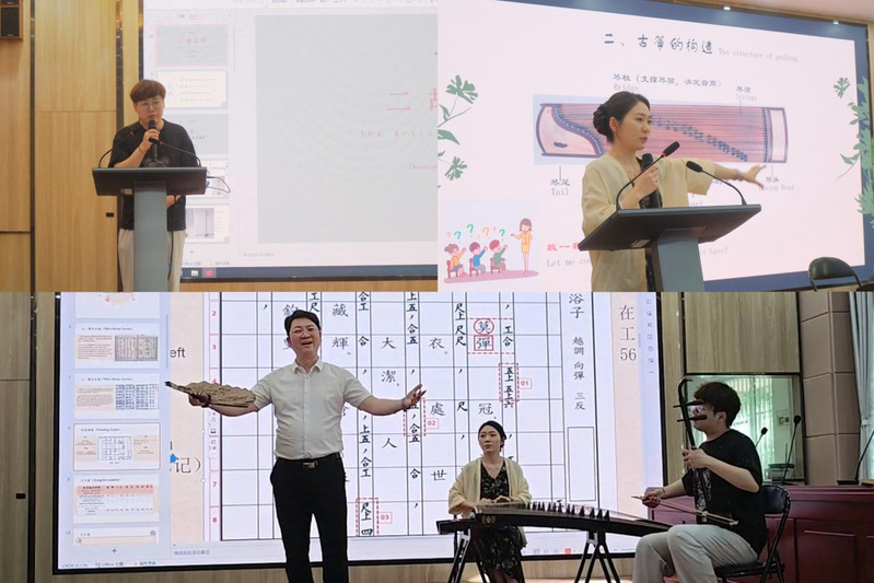 安徽艺术学院音乐学院国乐教研室主任朱泽军、教师殷悦也分别讲授了二胡和古筝课程,并联袂音乐学院副院长、中华古谱诗词传承与创新研究中心主任张祖顺,现场示范演绎中华古谱诗词《沐浴子》,赢得现场国际学生的热烈掌声和高度赞誉。