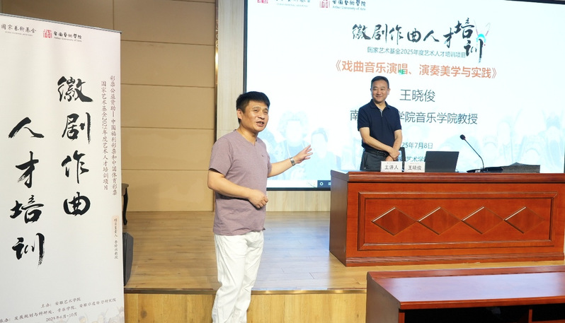 7月8日上午,南京艺术学院音乐学院院长王晓俊教授就《戏曲音乐演唱、演奏美学与实践》展开教学。