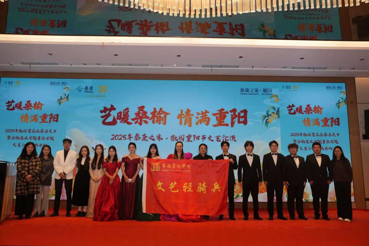 演出由安徽艺术学院教师叶士贤带来的钢琴独奏《圆舞曲》(莫里斯·拉威尔)拉开序幕,为现场营造了优雅的艺术氛围。随后,安徽艺术学院教师孙欢欢与叶士贤合作的《G大调小提琴与钢琴奏鸣曲》(纪尧姆·莱克)将观众带入古典音乐的殿堂。黄梓翔的美声独唱《夕阳红》表达了对老年生活的美好祝愿,古筝独奏《晓雾》、民族独唱《关雎》、长笛独奏《瑞士牧羊人》和流行独唱《世界赠予我的》等节目轮番上演,形式多样,内容丰富。安徽艺术学院教师赵艳艳的女声独唱《我爱你中国》和男女声小合唱《遍插茱萸少一人》更是将现场气氛推向高潮,最后全体大合唱《我和我的祖国》表达了对祖国的深深热爱。