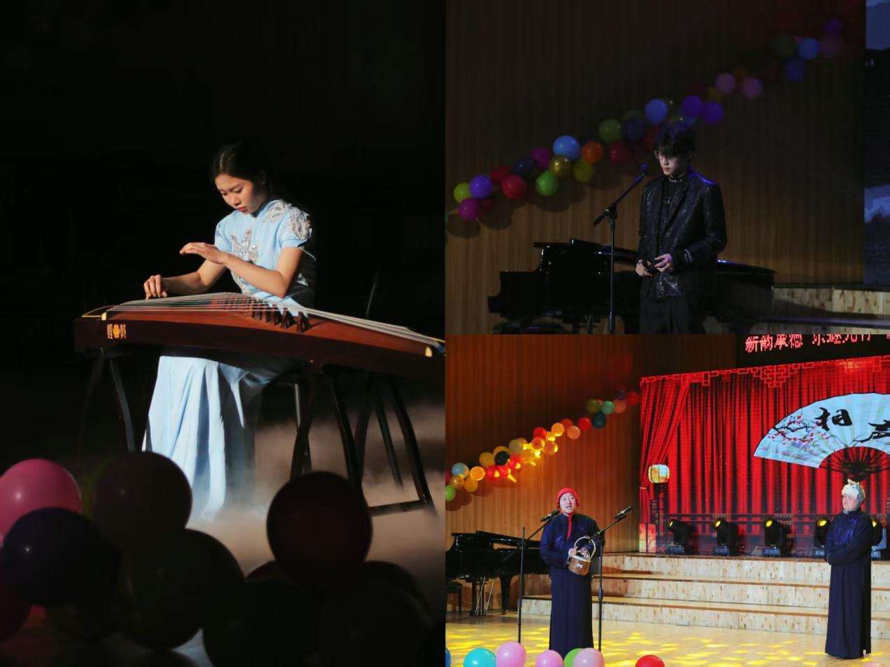 晚会现场融入颁奖和抽奖环节,为毕业班优秀党员和优秀学生干部颁发荣誉证书,鼓励毕业生扬帆远航,将会场推向高潮。随后,舞蹈《赛乃姆》用舒展舞姿展现民族艺术魅力,相声《小红帽》以诙谐表演逗趣全场;四重唱《领航》以磅礴和声传递时代精神,独唱《陪你去流浪》《莫尼山》各展声线特色,或温柔或辽阔的演绎打动人心;古筝独奏《晓雾》如行云流水,尽显传统乐器意境之美;萨克斯合奏《激情探戈》以热烈节奏吸引全场目光;25级声乐班白俄罗斯学生萨莎以一首俄文歌曲让人感觉在星空漫步,为晚会画上圆满句号。