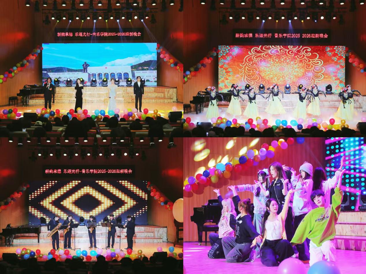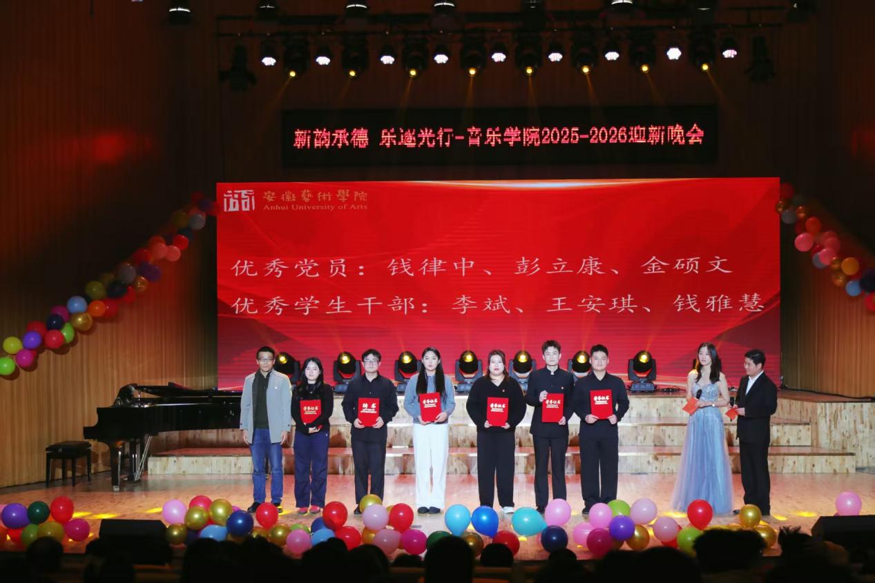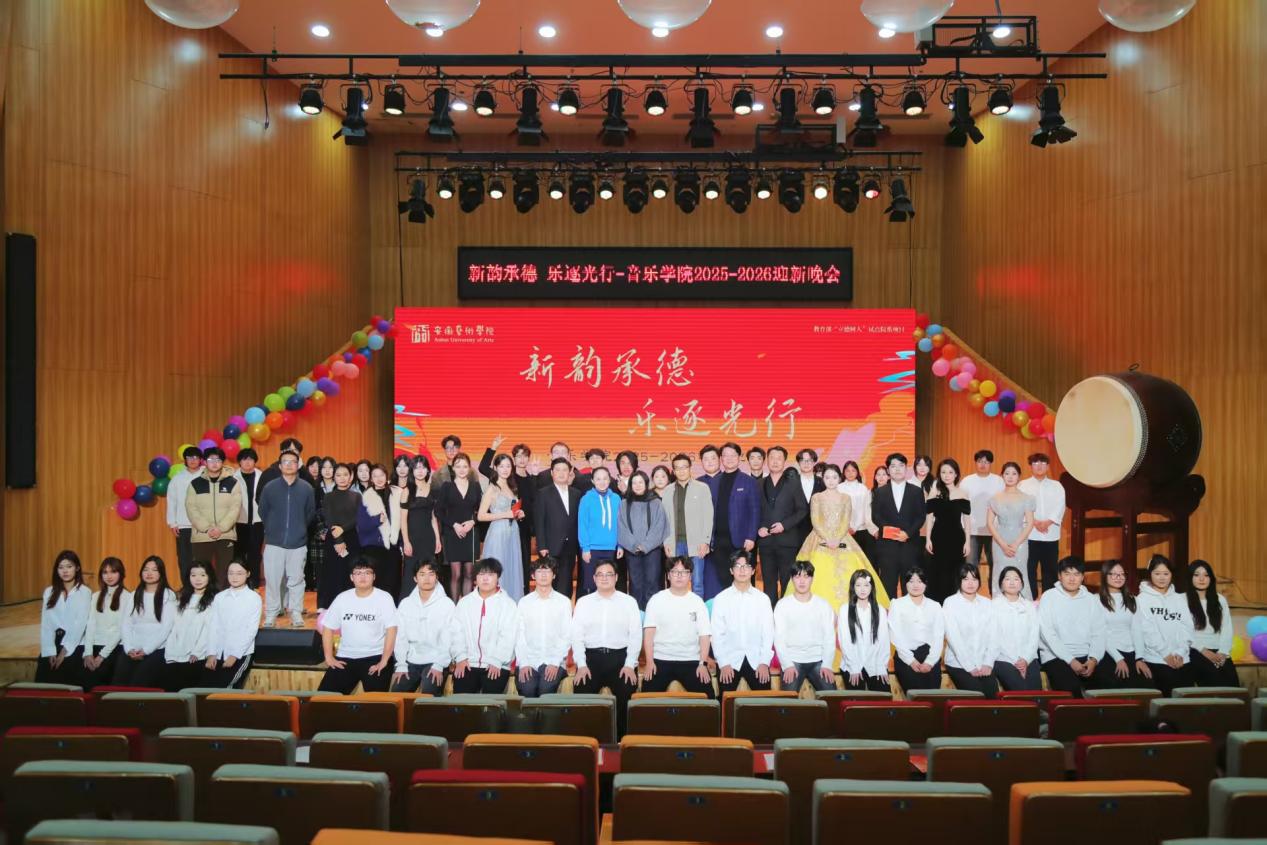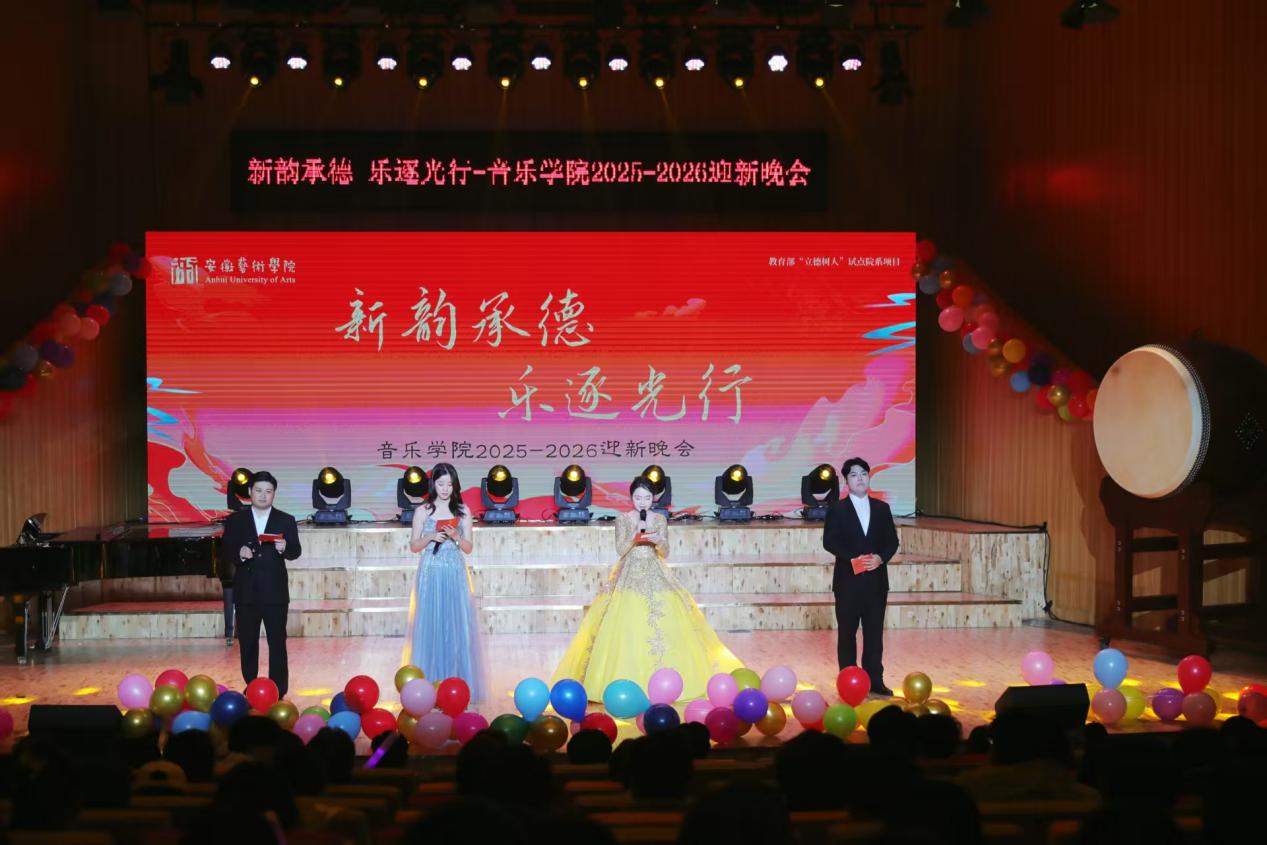为落实教育部“立德树人”试点院系项目建设,12月17日晚,音乐学院“乐逐光行,新韵承德”迎新晚会在音乐南楼音乐厅隆重开演。安徽艺术学院党委委员、副校长曹晓富,党委学生工作部部长、学生处处长高英娟出席晚会,与学院党政领导班子成员、师生代表及特邀嘉宾近200人齐聚现场,共赏艺术盛宴,喜迎2026新年和2025级新生。
