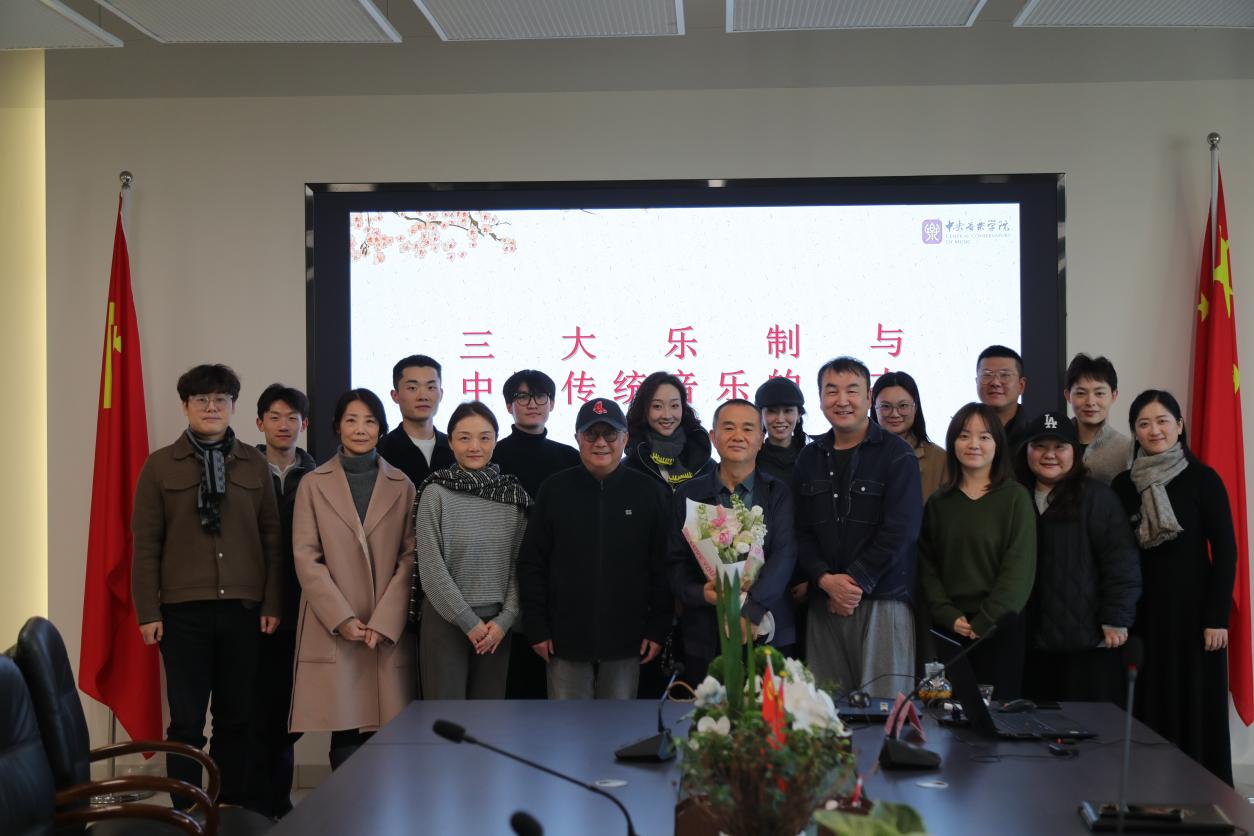 12月26日下午,中央音乐学院教授、博士生导师、原副院长肖学俊在舞蹈楼408会议室作题为《三大乐制与中国传统音乐的律态》的专题学术讲座。讲座由音乐学院院长李伟主持,舞蹈学院院长戴虎、发展规划与科研处副处长冯传胜、音乐学院副院长郭强、音乐学院特聘教授罗可曼等出席活动。